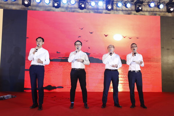 最后,由四位男神合唱的一首《紅日》,將年會的氣氛推上了最高潮:“命運(yùn)給人多少機(jī)會,命運(yùn)讓人無言以對,命運(yùn)老是答非所問讓人掉眼淚,我不會灰心,狂風(fēng)吹呀吹,讓我們,用心一起來體會……”