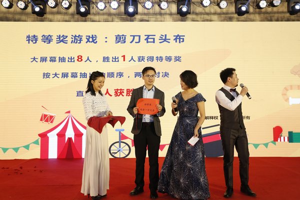 本次年會設(shè)置了大量獎(jiǎng)項(xiàng),包括數(shù)量龐大的驚喜獎(jiǎng)和三等獎(jiǎng)、二等獎(jiǎng)、一等獎(jiǎng)及眾所期盼的特等獎(jiǎng),獎(jiǎng)品豐厚,讓人拿到手軟。戴森吸塵器、55寸液晶電視、電動滑板車、華為榮耀手機(jī)、雅詩蘭黛經(jīng)典套裝、Beats Solo3藍(lán)牙耳機(jī)……,以及終極大獎(jiǎng)萬元大紅包,這些眾人心儀已久的獎(jiǎng)品向大家頻頻招手,令人抓狂。