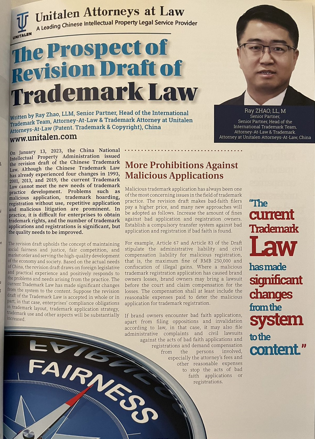 集佳文章《The Prospect of Revision Draft of Trademark Law》在《The global IP Matrix ISSUE 16》發表