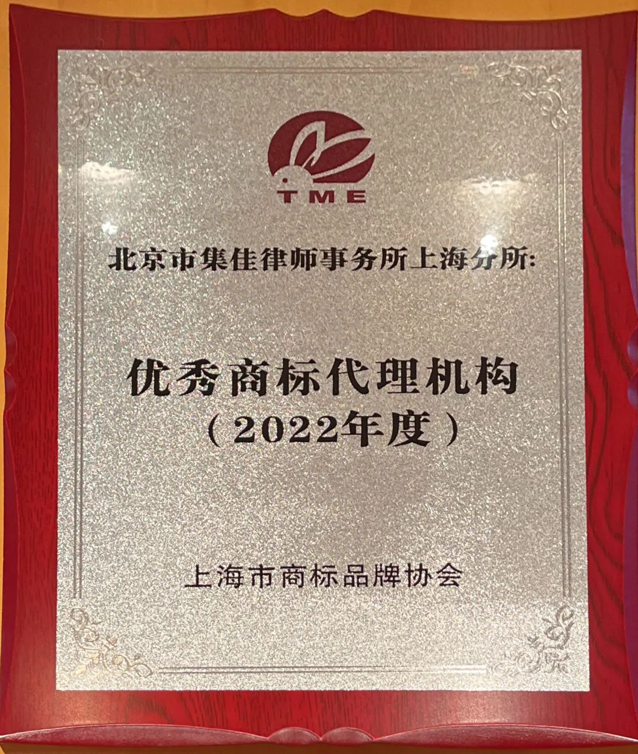 集佳上海分所被評為2022年度“上海市優秀商標代理機構”。