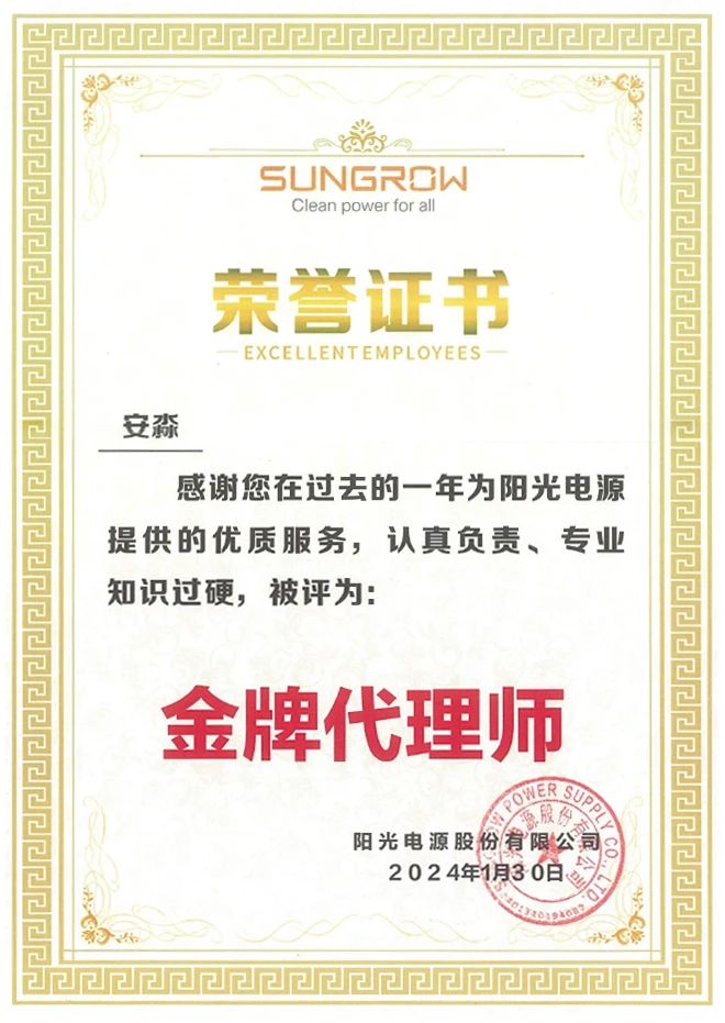 新春伊始,集佳再獲喜訊——陽光電源股份有限公司授予集佳“優(yōu)秀合作伙伴”榮譽(yù)稱號(hào)。