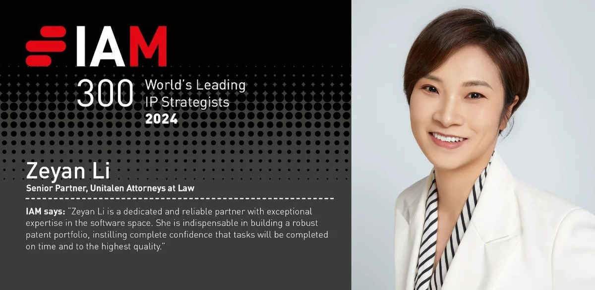 近日,國際知識產權專業媒體Intellectual Asset Management(《知識產權資產管理》,簡稱IAM)公布了2024年度IAM全球知識產權戰略家300強(IAM Strategy 300-The World’s Leading IP Strategists),集佳合伙人趙雷李澤艷憑借在知識產權領域的卓越能力與良好聲譽榮登榜單。此前,李澤艷還入選了2023年末發布的2024年度“IAM知識產權戰略全球領導者” 榜單(IAM Strategy 300 Global Leaders)。