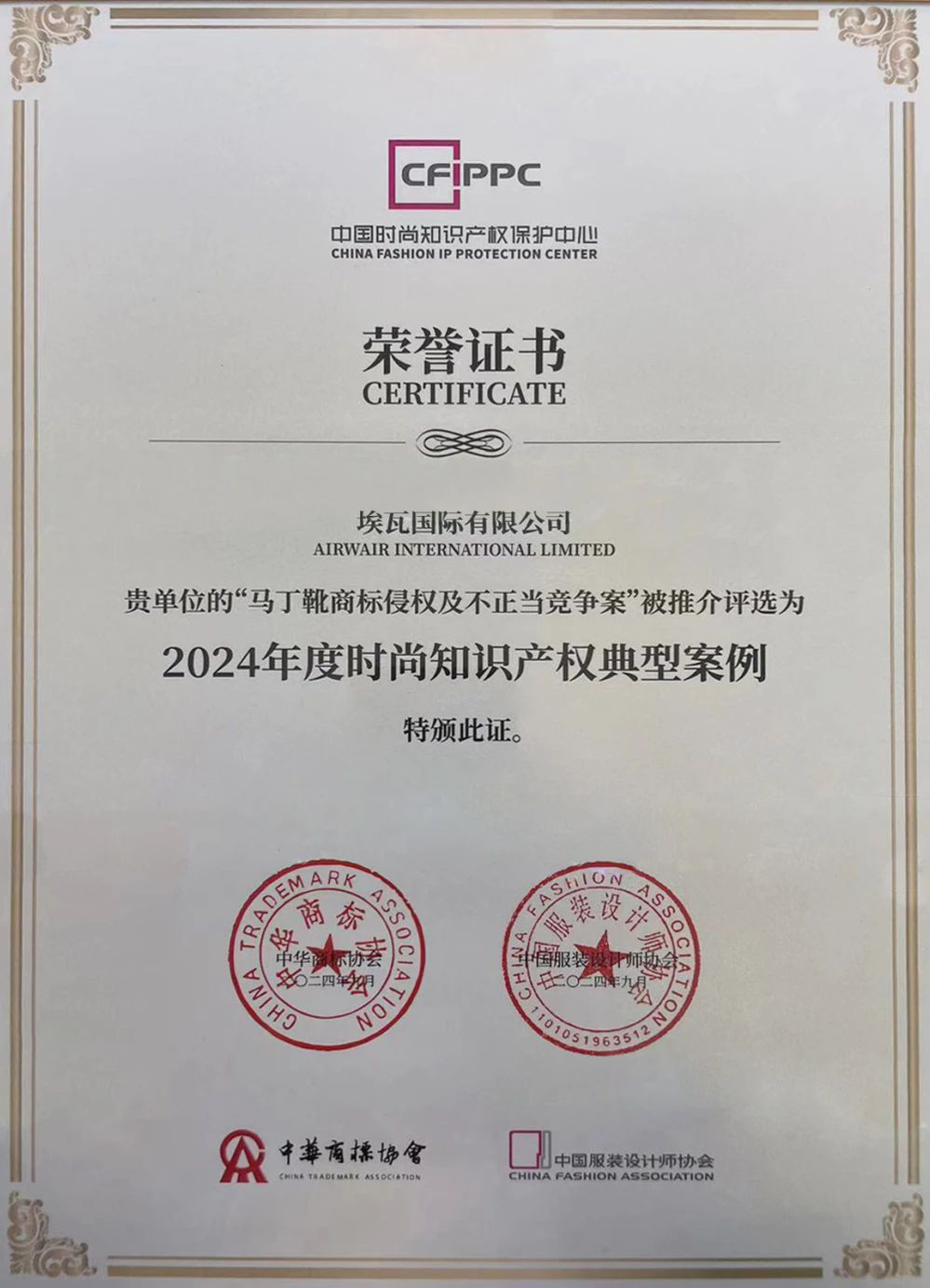 集佳代理埃瓦國際有限公司(AIRWAIR INTERNATIONAL LIMITED)的“馬丁靴商標侵權及不正當競爭案”榮登十大案例榜單。本案涉及與時尚品鞋履有關的商標侵權及不正當競爭行為的認定問題。在商標侵權行為的認定中,商標權人一方面積極舉證證明“馬丁靴”并非商品的通用名稱,另一方反駁被控侵權人證明“馬丁靴”已經構成商品通用名稱證據的可采性,在證明商標有效性的前提下確定被控侵權行為的成立,該案對通用名稱的認定具有示范意義。另外,本案還在如何判定廣告宣傳表述構成虛假宣傳和商譽詆毀方面具有典型意義。