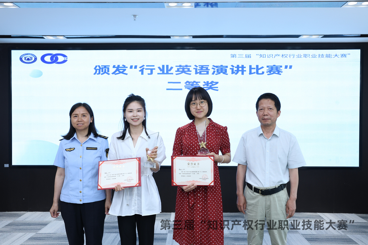 ▲黃建軍二級(jí)巡視員、張芳英局長為行業(yè)英語演講比賽二等獎(jiǎng)?lì)C獎(jiǎng)(左二為徐欣)